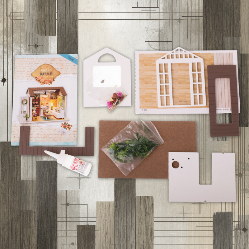 Rodzaj produktu – drewniany miniaturowy salon do samodzielnego złożenia i dekoracji