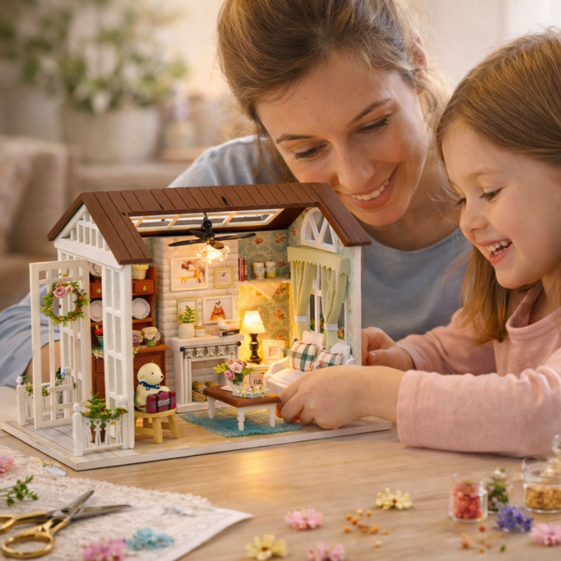 Mini domek dla lalek to więcej niż zabawka: dziecko uczy się odgrywania ról, ćwiczy koncentrację i logiczne myślenie, rozwija zdolności manualne i społeczne.